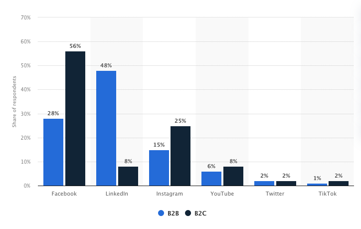 LinkedIn has slid back to the second most used platform for B2B. However, it remains the most important, with 40% of marketers voting LinkedIn as the most powerful social marketing media platform for their business content. The strength of LinkedIn lies in its strong organic capabilities. Its strong organic reach has led to 84% of B2B buyers constantly sharing business-related posts and content on LinkedIn.