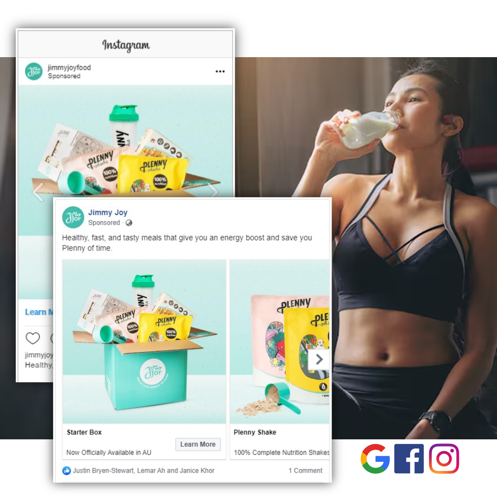 We brought Jimmy Joy’s story to life with lifestyle-led ad creative, vibrant visuals, and a tone that matched the brand’s cheeky, health-conscious voice.